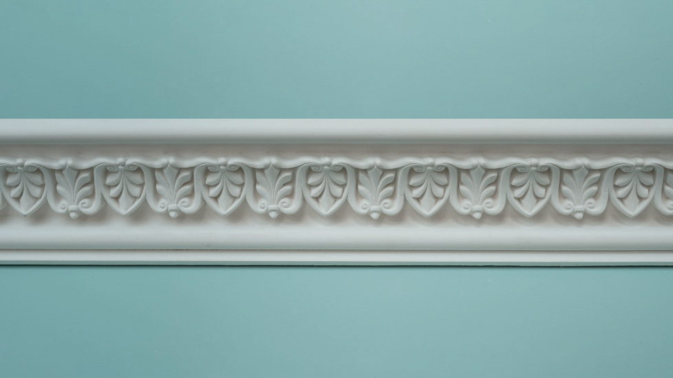 Small French Leaf Cornice, features a repeating leaf motif. Suited to a small/medium sized room. See HH18 for French Cove.